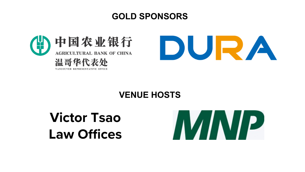 CCBC gratefully acknowledges the support of its Gold Sponsors, Agricultural Bank of China, Vancouver Representative Office, and Dura Group, as well as its venue hosts, Victor Tsao Law Offices and MNP, whose contributions helped make the event a success. Thank you to all speakers and participants, and we look forward to continued engagement with our members and partners throughout the Year of the Horse.